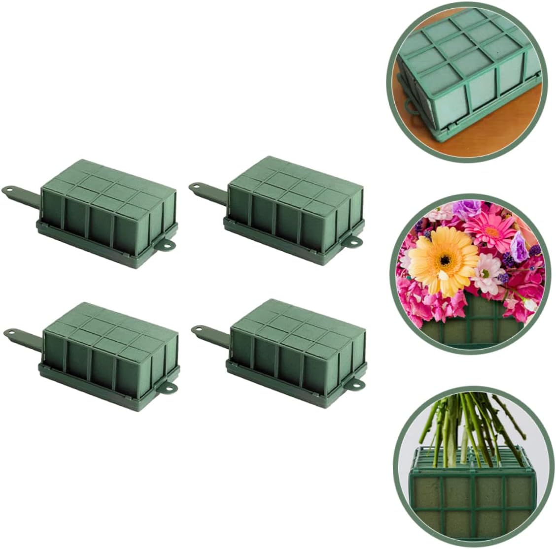 Package Include 4 x floral cages Characteristics -Size:30.00X12.40X8.50cm/11.79X4.87X3.34in bases for flower arrangements -Material:PP, phenolic resin flower arrangement grid -Color:Green floral arranging supplies -Simple to use, wet it in water, then insert your beautiful fresh flowers or other decorations with creative arrangement flower arrangements. -Wide range of use, this flower cage can be used for weddings, festivals, anniversaries, home decor, party decoration, etc reusable flower arrangement holder. -The floral cage is suitable for fresh flower arrangements and widely sued in shelves, walls, doors and other places decor flower cage. -Fast water absorption and good moisturizing, high density, less slag drop, convenient flower arrangements flower arrangement holder. -Handle designed and come with a hanging hole, which provides a convenient way for you to suspend is on the wall floral cage for artificial flowers.Goods Informationplastic bouquet base This flower cage for wall hanging is practical and safe, very convenient and easy to use.flower bouquet holder High density, less slag, simple and convenient for flower arrangement.flower arranging accessories Can be used for DIY floral art, you can use them for weddings, Halloween, Christmas, anniversaries, etc